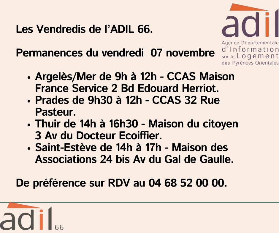 Pour une information neutre et gratuite, vous pouvez contacter les juristes de l’ADIL 66 au ☎ 04 68 52 00 00, contact@adil66.org, ou sur notre site internet .